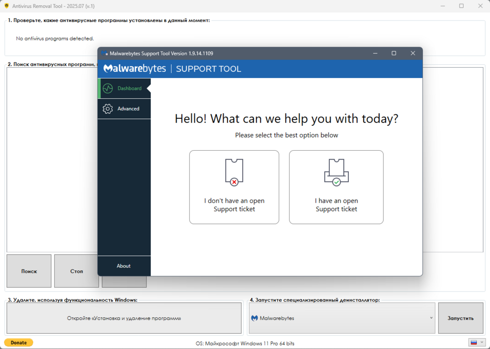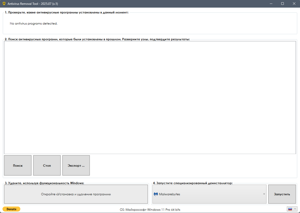 - Узкая специализация: В отличие от обычных антивирусов, которые ищут и удаляют вредоносное ПО, Antivirus Removal Tool фокусируется исключительно на деинсталляции других антивирусных программ.