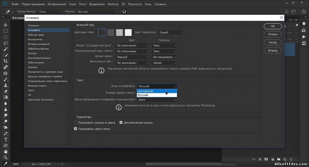 Язык интерфейса: Русский, Английский