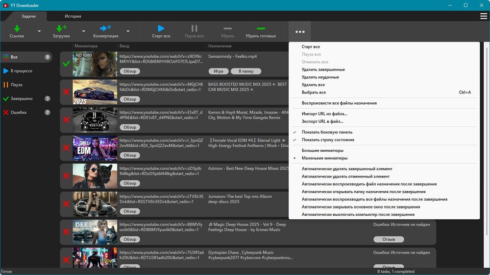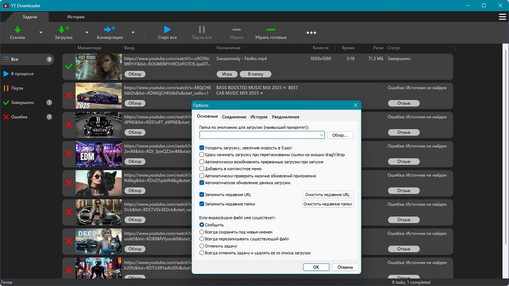 • YT Downloader поддерживает одновременные загрузки. Это позволяет загружать более одного видео одновременно и в безопасное время.