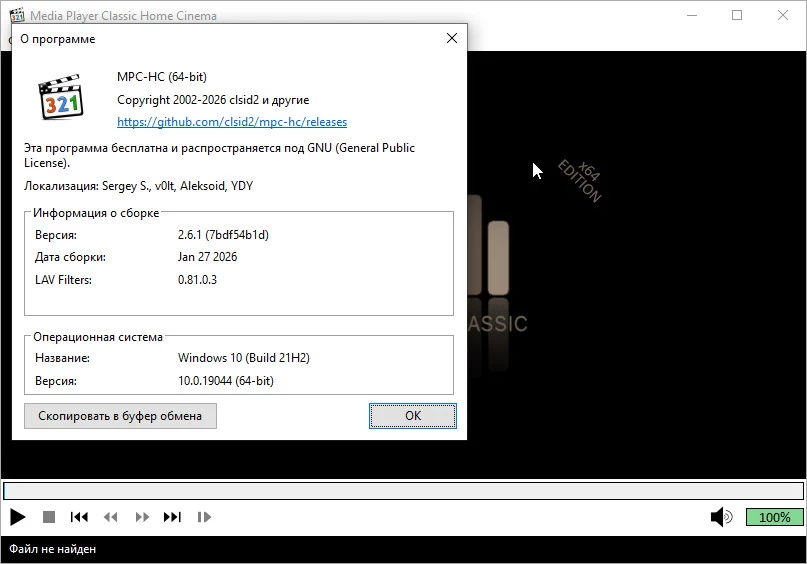 Обновление LAV Filters: Встроена свежая версия декодеров (0.81-3-g5d467), что повышает совместимость с редкими контейнерами и улучшает общую стабильность воспроизведения.