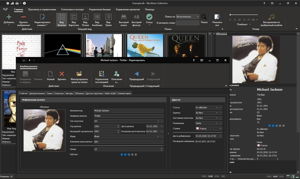 — Легко настраивайте My Music Collection. Вы можете изменить внешний вид приложения, макет экрана, выбрать вид коллекции, настроить панели инструментов или добавить и удалить поля.