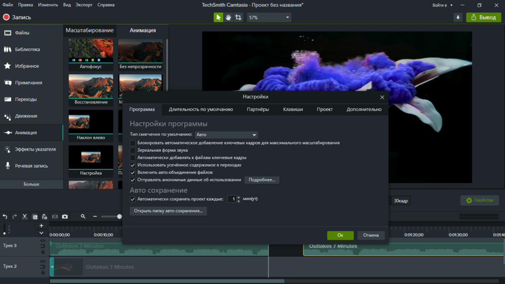- Автоматический SmartFocus: Функция автоматического масштабирования и панорамирования (зуммирования), которая анализирует запись экрана и автоматически фокусирует внимание зрителя на курсоре или активных окнах, теперь доступна в качестве эффекта экрана в Rev.