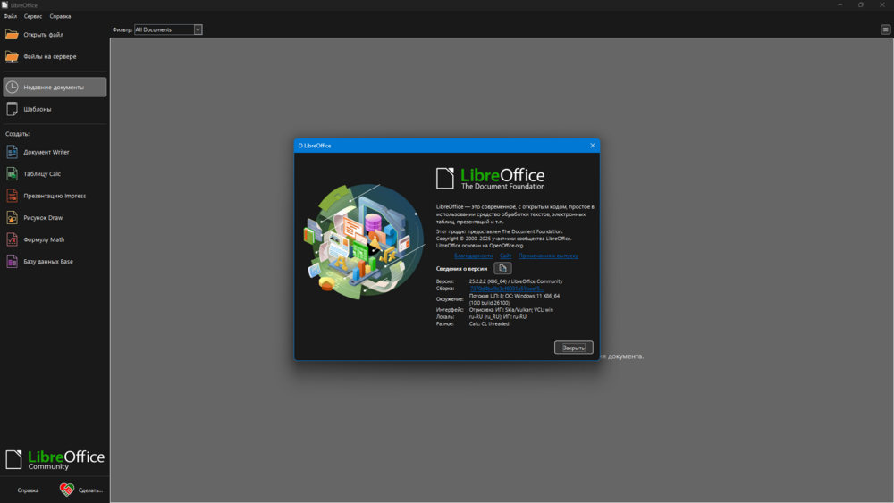 LibreOffice 25.8.3.2 — это стабильный выпуск, который включает в себя последние исправления ошибок и направлен на предоставление пользователям современного, безопасного и высокопроизводительного набора офисных приложений (Writer, Calc, Impress, Draw, Base, Math).