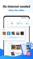 Работа без Интернета и мобильных данных: Обмен файлами происходит напрямую между устройствами по защищенному соединению Wi-Fi Direct, не расходуя мобильный трафик.